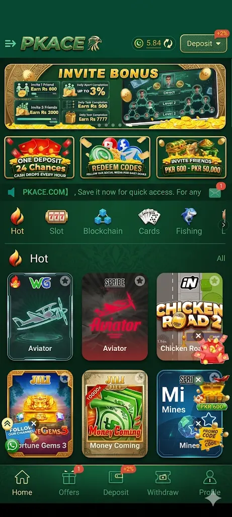 PK Ace Game brings together everything Pakistani players look for in one simple app: real fun, fair chances, and quick earnings straight to your mobile wallet. With its smooth performance, exciting games like Aviator, Teen Patti, and more, plus daily bonuses and easy local payments through JazzCash and EasyPaisa, it fits perfectly into everyday life. Whether you play for a few minutes during tea breaks or enjoy longer sessions in the evening, the platform rewards smart play and keeps things exciting without any complications.